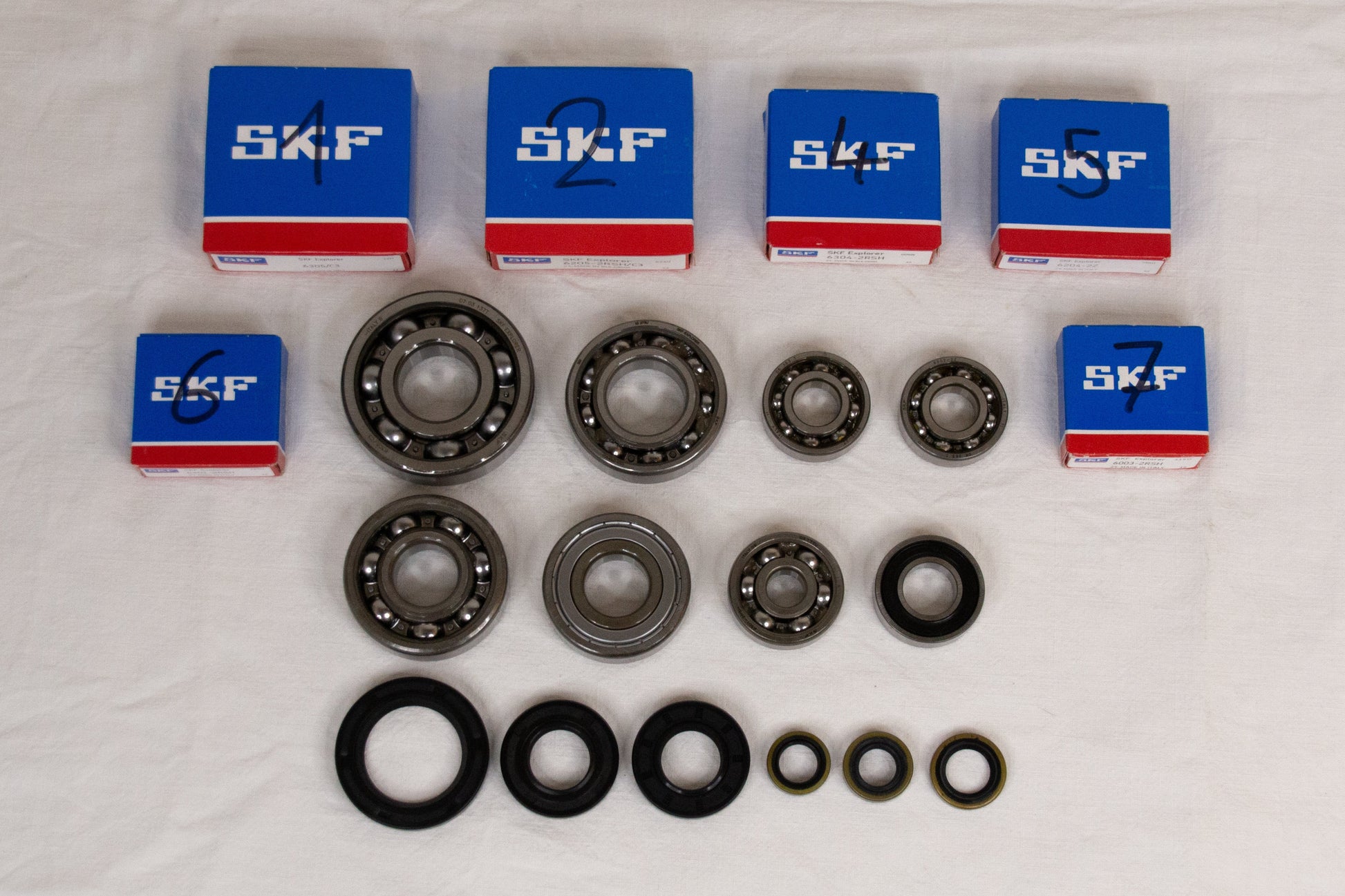 Wenn du einen Motorschaden hast und schnellstmöglich wieder fahren willst, bist du hier richtig! Hier sind die wichtigsten Motor Lager und Simmerringe, in hochwertiger SKF und OEM Qualität dabei, passend für deine Kawasaki KMX 125/200!